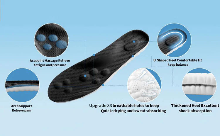 Experience walking on clouds with these high-elastic PU memory foam insoles. Designed with multi-layer cushioning and a thickened heel pad, they absorb shock and reduce pressure on feet and legs—perfect for long hours of standing or walking. Enjoy cloud-like softness and resilience with every step.