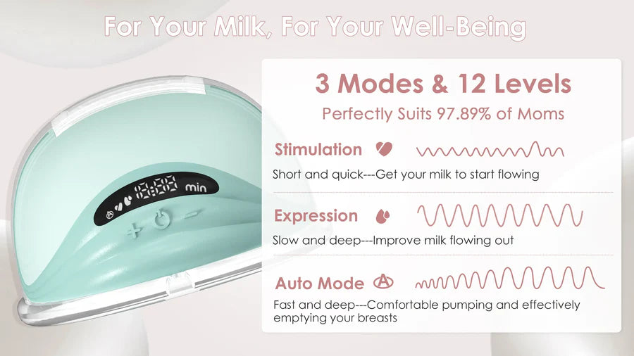 Beyond milk collection, we champion maternal wellness through precision-engineered customization: 3 Smart Modes × 12 Micro-Adjustable Levels = 36 Personalized Expression Programs.